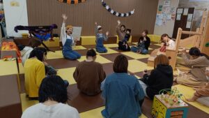 1歳のお子さんが多く、お母さんと一緒に歌を歌ったり、スキンシップをとりながら、やさしい時間を過ごしました。