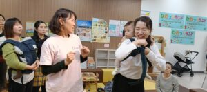 さらに、おんぶの仕方、スリング、さらし布での抱き方も実際に触れながら練習しました。