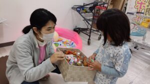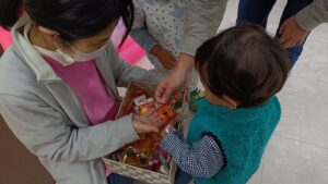 順番待ちができたときには、小学生がお菓子配りを手伝ってくれる場面もありました。