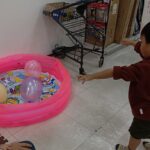 プールに風船を投げ、入った回数だけお菓子をGET!