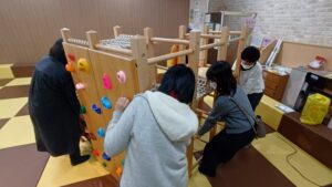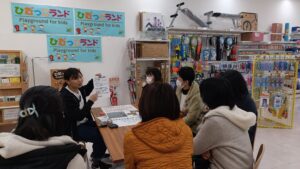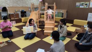 当日、スタッフとして入ってくださっていた国府町の子育て支援団体「かれーらいすの会」の方から子どもへの接し方についてお話してくださる時間もあり、参加された方が、話しかけ方や対応について相談されていました。