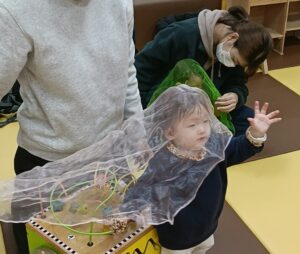 続いて、シフォン布を使ったあそびも行いました。