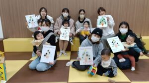 ちょうど誕生月というお子さんがいたり、ドングリ2つを雪だるまに見立てたり、それぞれ世界にひとつだけの素敵な作品が完成✨