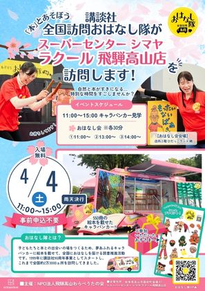 📚 講談社「本」とあそぼう 全国訪問おはなし隊 が、ラクール飛騨高山(ひだっこランド)にやってきます!