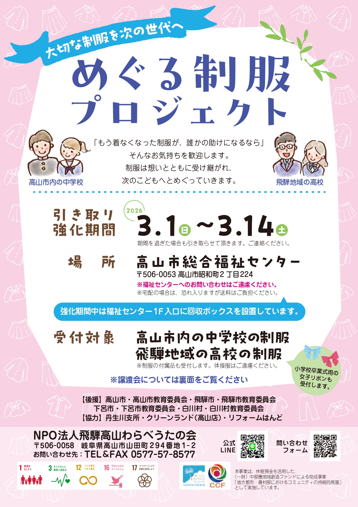 思い出の詰まった大切な制服をお預かりし、次の世代へお渡しさせて頂く『めぐる制服プロジェクト』を、コロナ禍の2021年より継続して行っています。