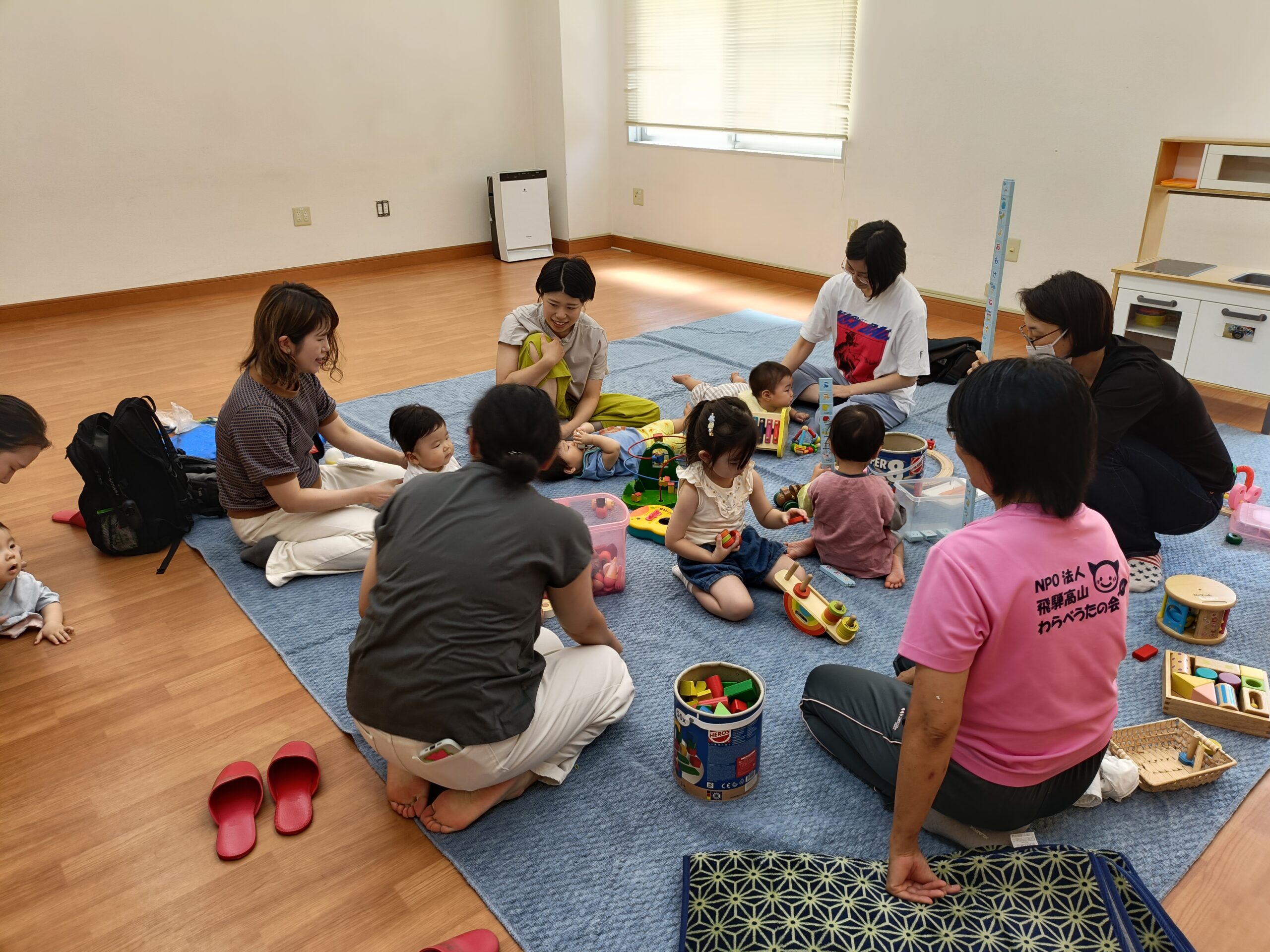 ビッグアリーナ多目的室にて『保育のプロから学ぶ発達に応じたおもちゃ・あそび歌』を開催させていただき、8組の乳幼児親子が参加してくださいました。